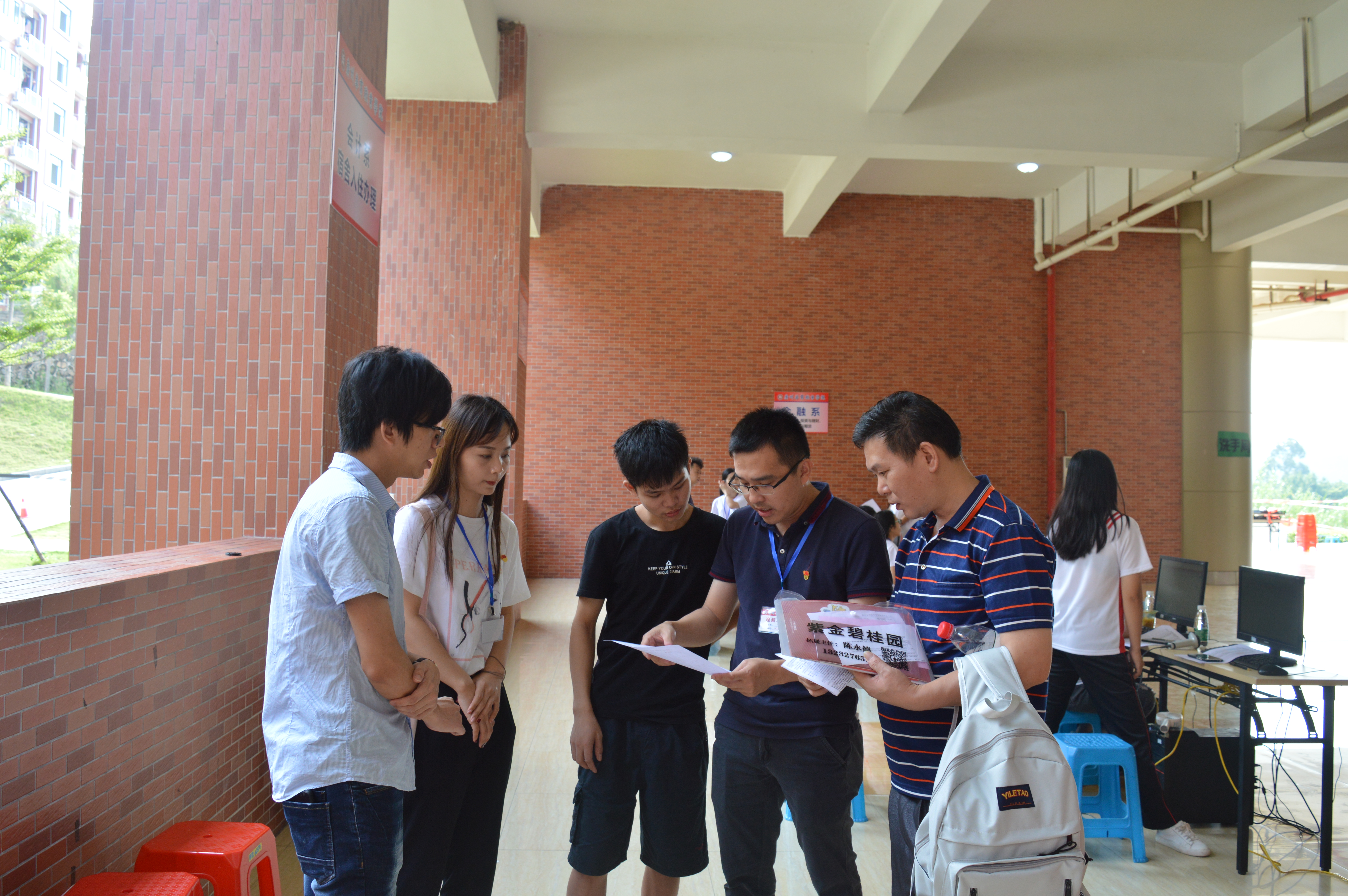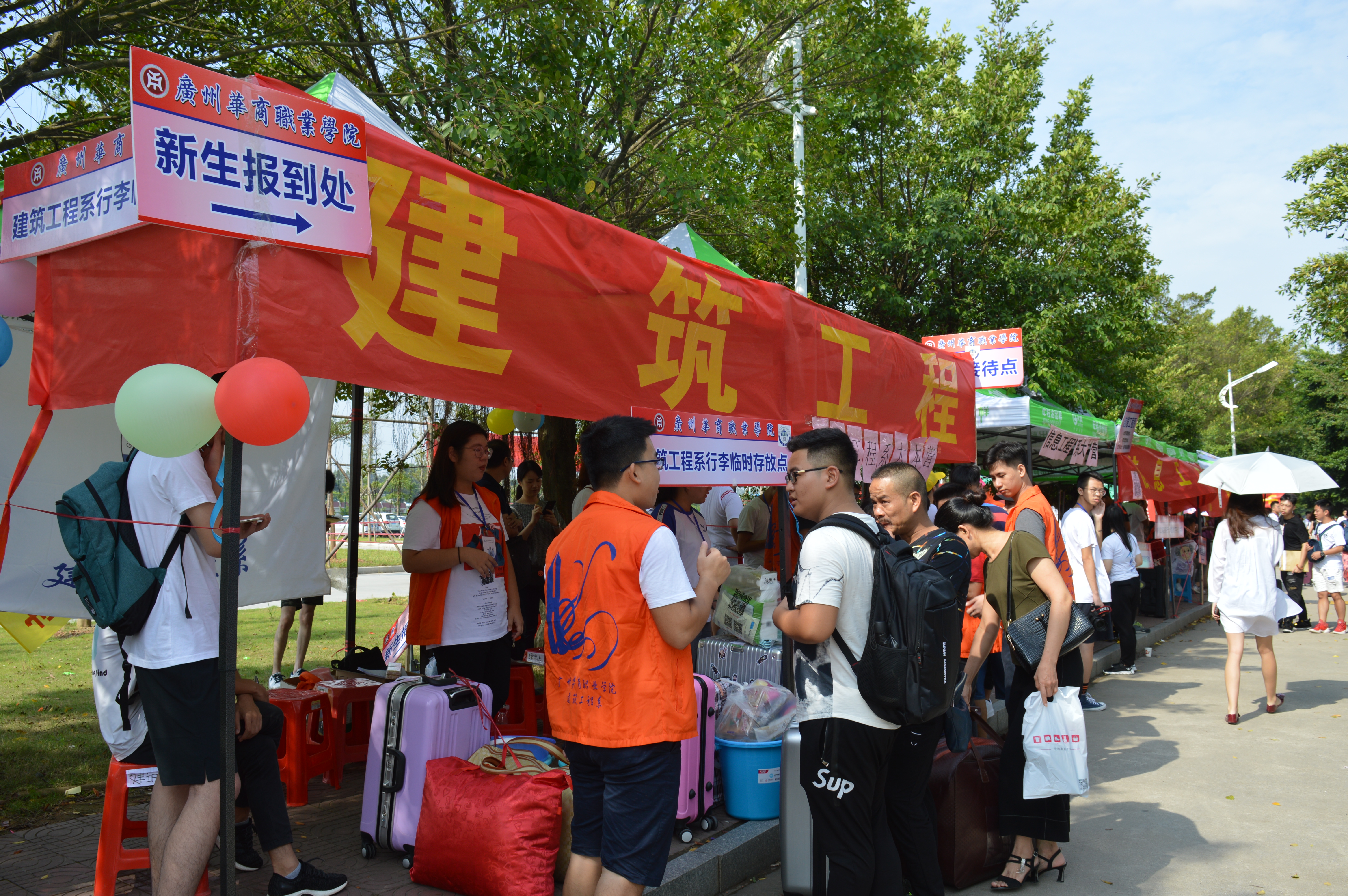 9月8日早上7:00,各工作小组提前到达各自岗位做好迎新准备。车站接待组积极引导新生乘坐学校巴士,解决部分新生到校难题;校道上的大本营组帮忙卸下新生们沉重的行李,有条不紊地指引新生们做好报到的每一个流程;专业咨询报到组不厌其烦地给新生和家长们解答各种疑问,大大促进了新生对自己大学生活的了解;宿舍安排组为新生们安排好最后的落脚点,热情地接过新生们的行李,用温暖感染每一位新生,帮助他们更快地融入建筑工程系这个大家庭。
