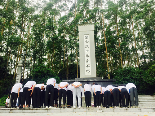 面对庄严的墓碑,大家整齐排开,肃然起敬,敬献鲜花,鞠躬行礼,向革命英雄先烈致以崇高的敬意。随后,党总支组织委员叶晓芬老师带领同学们重温了入党誓词,铿锵有力的声音在“革命先烈永垂不朽”的纪念碑前萦绕,让大家感受到党员、学生干部应有的责任和使命。最后,学生党支部欧曼芸书记发表了讲话,希望大家能珍惜美好生活,树立坚定信念,提升自身素质,提高服务意识,争当四有青年。