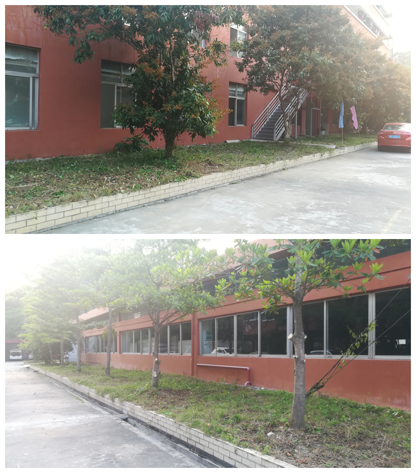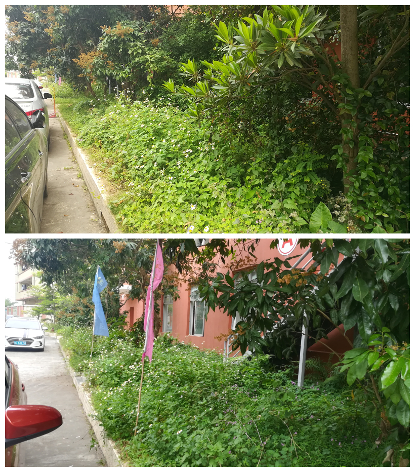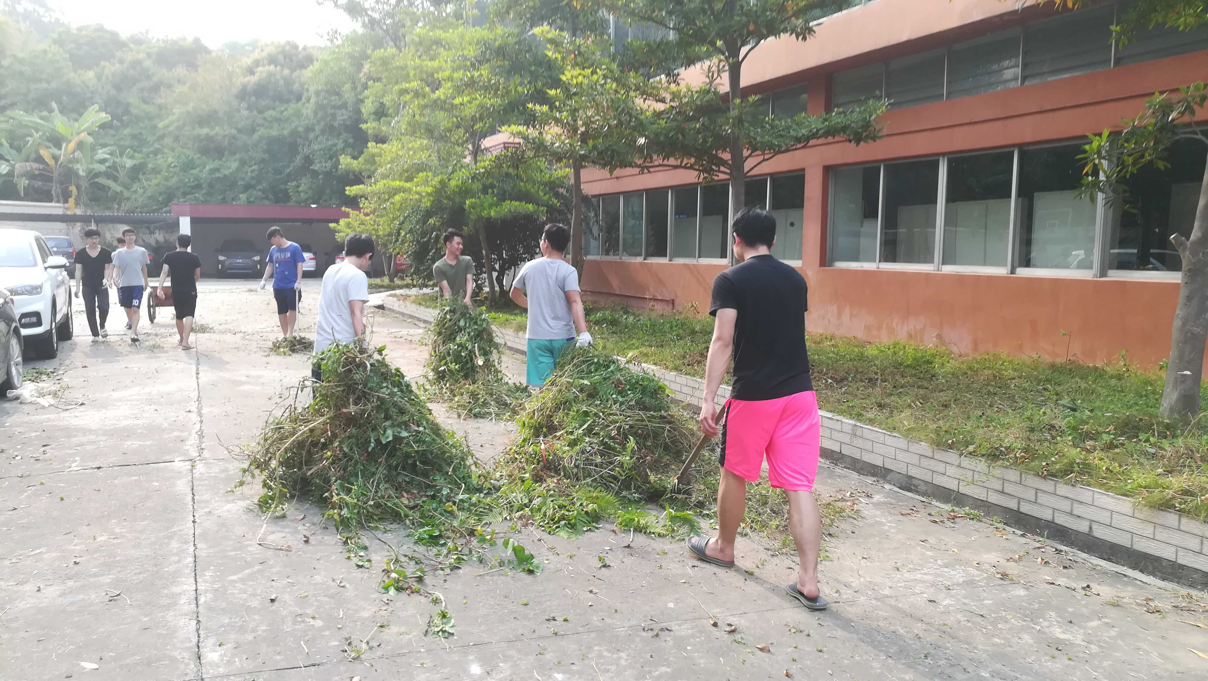 经过近2个小时的拔草劳动,校区环境焕然一新,汽车学院摇身一变成为了一名刚理完头发的帅小伙子了。
