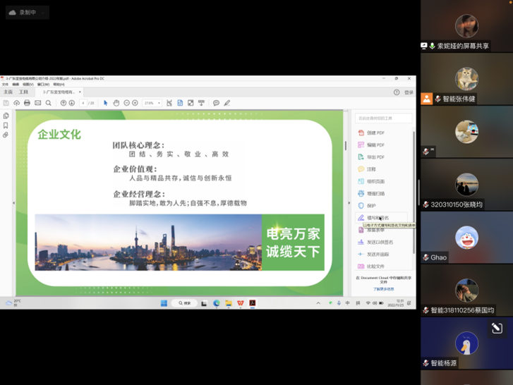 在会议上,公司人事经理在线上会议中围绕招聘岗位类型、岗位要求、实习条件、免费岗前培训、实习和就业薪资、晋升途径、未来职业发展规划等方面,进行全方位的解读和指导,并为有兴趣的同学预留联系方式和沟通的平台。