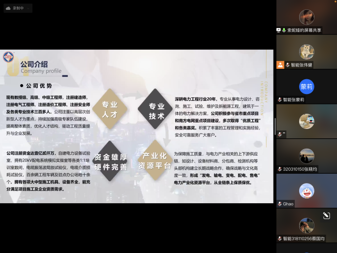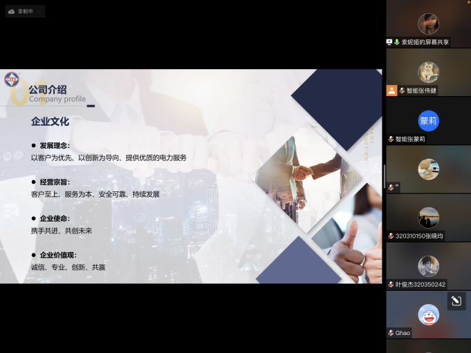 在线上招聘会中,首先介绍了公司的简介、招聘岗位、岗位要求及职责、薪资结构以及公司的发展方向。向同学们详细介绍了薪酬及福利待遇以及公司试用实习员工的管理办法,鼓励同学们在职期间学历进修。