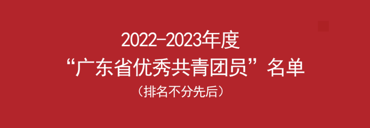 2023年4月26日,共青团广东省委员会发布《关于表彰2022—2023年度广东省五四红旗团委(标兵)、五四红旗团支部(标兵)、优秀共青团员和优秀共青团干部的决定》,我院学子林宏斌荣获“广东省优秀共青团员”称号!