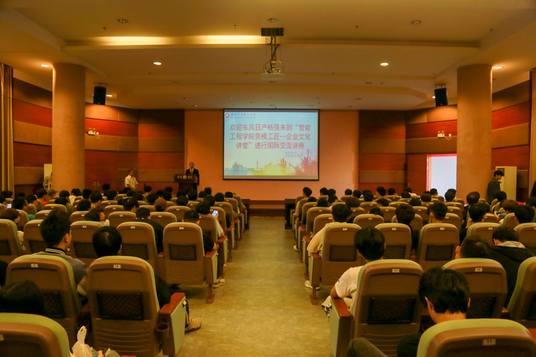 为进一步弘扬工匠精神,提升学生职业素养,丰富校园文化内涵建设,4月27日上午,智能工程学院在华商国际会议中心四楼报告厅举办了劳模工匠进课堂讲座。东风日产全国操作技术能手、卓越工匠、高级工程师杨强应邀为我院师生开展专题报告,讲座由高水平专业负责人吴刚教授主持。