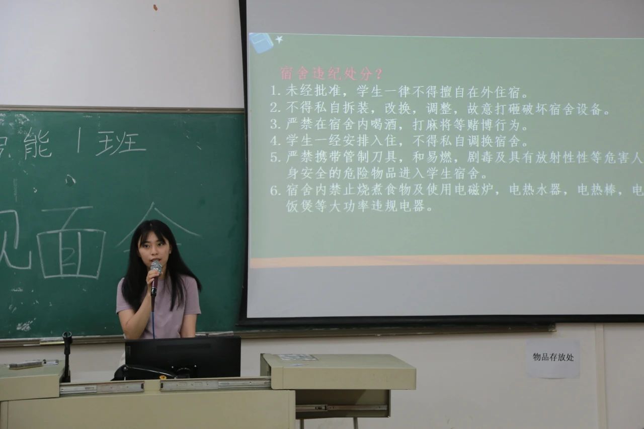 班会中,新生辅导员以及各班班主任对新生的加入表示热烈地欢迎,希望他们能够尽快适应大学的学习和生活环境,并强调了遵守校规校纪的重要性,要求新生要尊敬师长、团结同学、诚实守信、勤奋学习,积极参加各项活动;做到不迟到、不早退、不旷课、不吸烟酗酒、不打架斗殴、不参与赌博等。