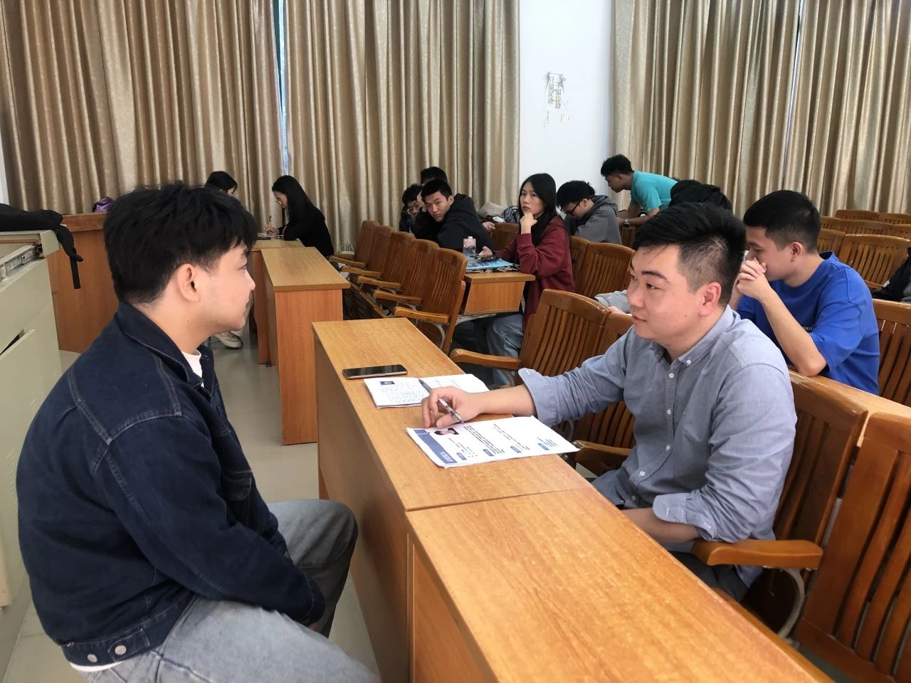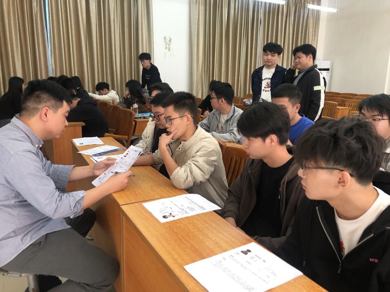 宣讲招聘会过程中,同学们就自己所关心的专业对口、发展平台、入职培训等问题与企业人员进行面对面的互动交流,企业人员对学生提出的问题,耐心细致作了解答,学生们在拓宽行业认知的同时,加深了对工作岗位的了解。