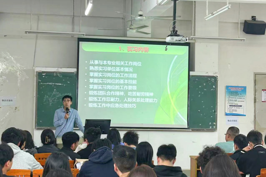 随后,实习专员针对实习安全、实习系统、实习注意事项等作详细讲解。并重点强调了安全的重要性,叮嘱每位同学在岗位实习期间,务必注意个人的人身财产安全,实习期间,多与父母及指导老师沟通;抓住每次用人单位企业宣讲机会,早日找到心仪的工作。