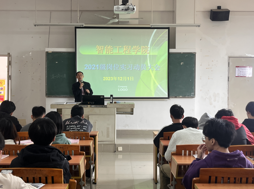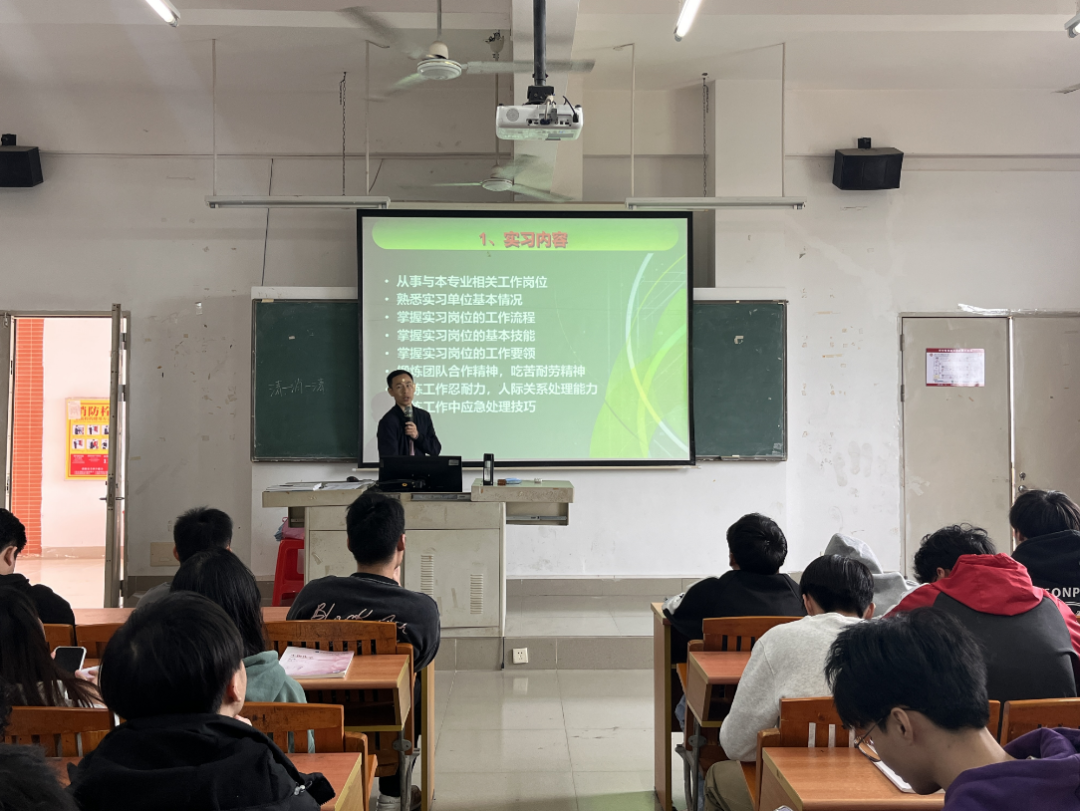 为进一步推进我院实习工作的有序开展,做好我院毕业生岗位实习工作,加强实习指导及实习工作的有序推进落实,提升我院学子对岗位实习工作重要性的认识。我院于2023年12月1日中午12:10起,分别在博A207、A307、A407、A507、B201、B301六个教室分三大专业群召开了毕业生岗位实习动员大会。智能工程学院李名亮副院长、实习专员林詹滨老师、戴乐毅老师、各实习指导老师、毕业班辅导员以及2021级全体学生参加了本次动员大会。