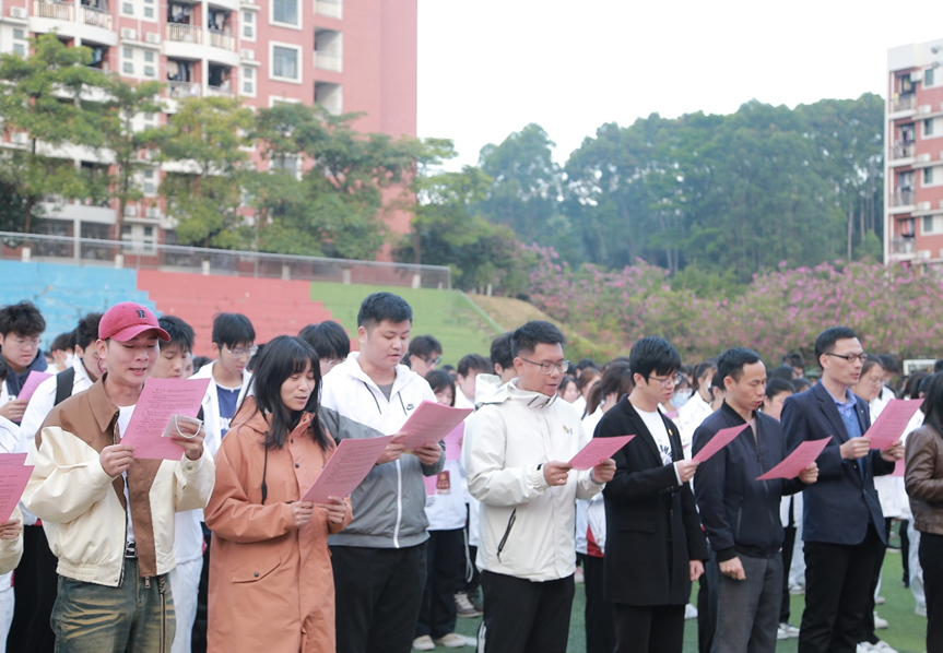 2023年12月4日是第十个国家宪法日,为深入学习党的二十大精神,贯彻落实习近平法治思想和习近平总书记关于宪法法治教育的重要指示精神,推动教育系统学习宣传宪法,维护宪法权威。广州华商职业学院智能工程学院国家宪法日“宪法晨读”活动于12月4日早上7:30分在东区操场举行。