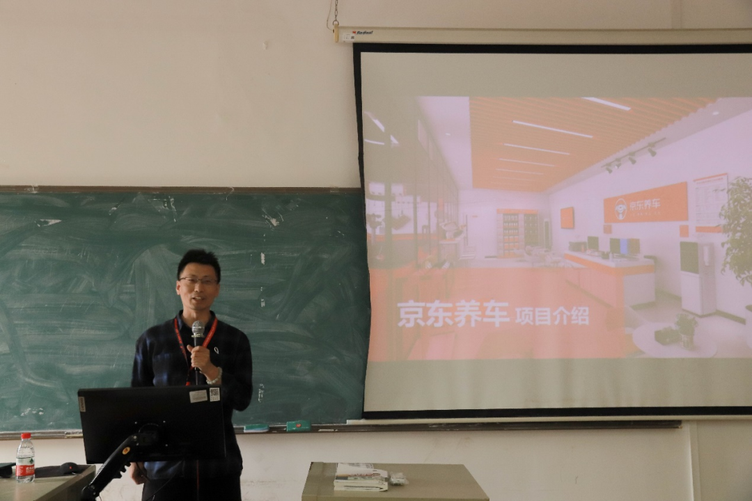 在会上,京东养车华南区域培训总监陈晓飞通过PPT向同学们详细地介绍了京东养车:京东养车是京东集团旗下专业汽车养护连锁品牌,致力于为车主提供高品质、透明化的汽车保养服务。自2018年年初成立以来,京东养车依托京东集团的强大资源和品牌势能,迅速发展成为覆盖全国的汽车后市场服务网络,并介绍了公司的企业背景、公司概况、招聘岗位和薪资待遇等方面的内容。