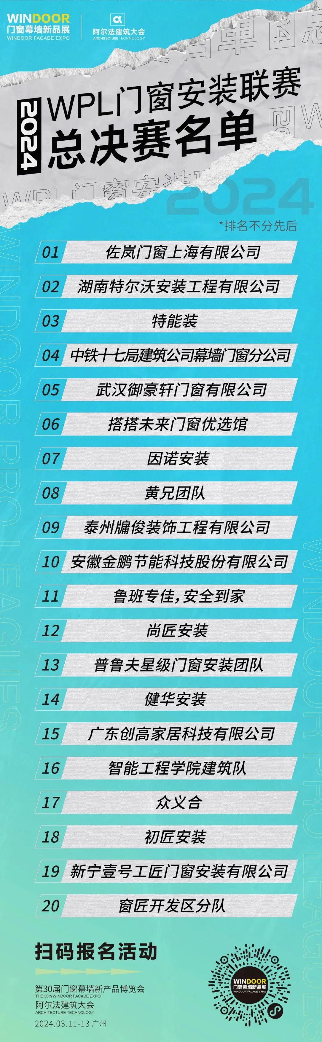 「WPL门窗安装职业联赛」由阿尔法建筑大会、WINDOOR门窗幕墙新产品博览会以及广州城博科建展览有限公司联合主办。广州门窗幕墙展每年3月于广州举办,已经持续了30年,「WPL门窗安装职业联赛」是大会为推动中国门窗安装技能发展而设立,大赛面向全国专业安装队伍,搭建门窗安装交流平台,施展安装施工技能水平,推动安装标准化流程,表彰优质工匠,吸引更多青年从业门窗事业。