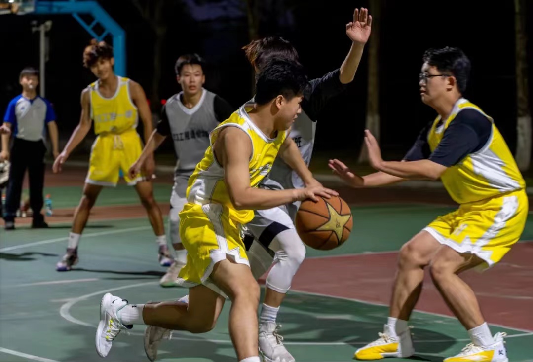 争抢、控球、远投……球员间密切协作配合,充分体现了“更高、更快、更强”的体育精神,也把火力全开,团结协作、顽强拼搏的体育精神表现得淋漓尽致。