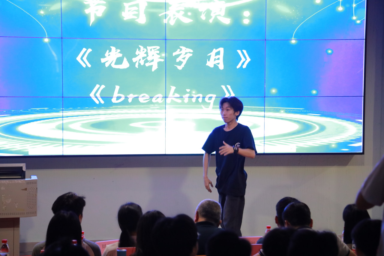 活动开场首先由邱永康、李汉哲同学带来歌唱表演——《光辉岁月》,一首快歌瞬间点燃了全场的热情。紧随其后的是曾逸凡同学带来的动感机械舞《breaking》,将现场气氛推向高潮。