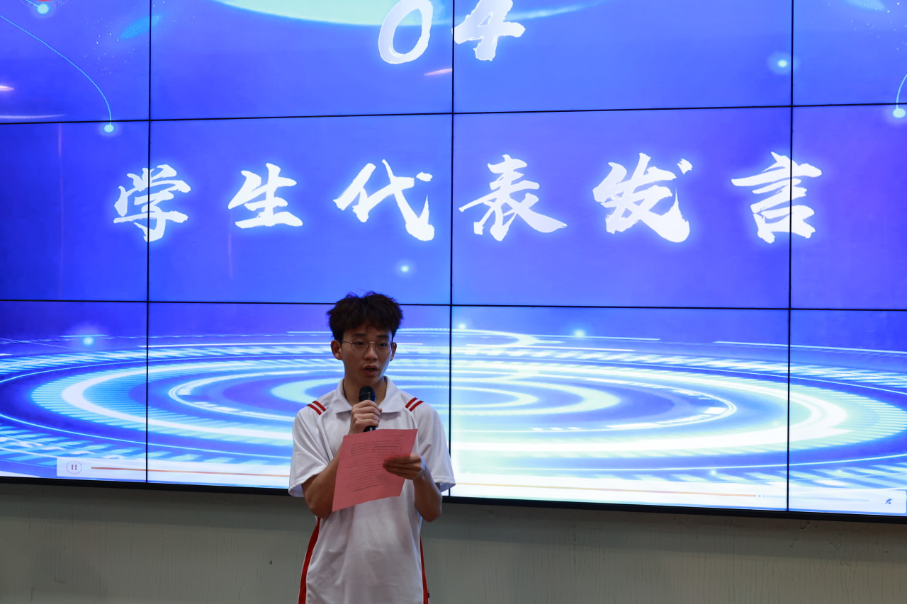学生代表陈李彬同学发表感悟。他表示“前途是光明的,道路是曲折的”在实现梦想在路上,要脚踏实地,明确目标,坚定信念,奋勇向前,为你独一无二的青春,为坚韧不屈的你自己,为美好光明的未来,奋力拼搏。