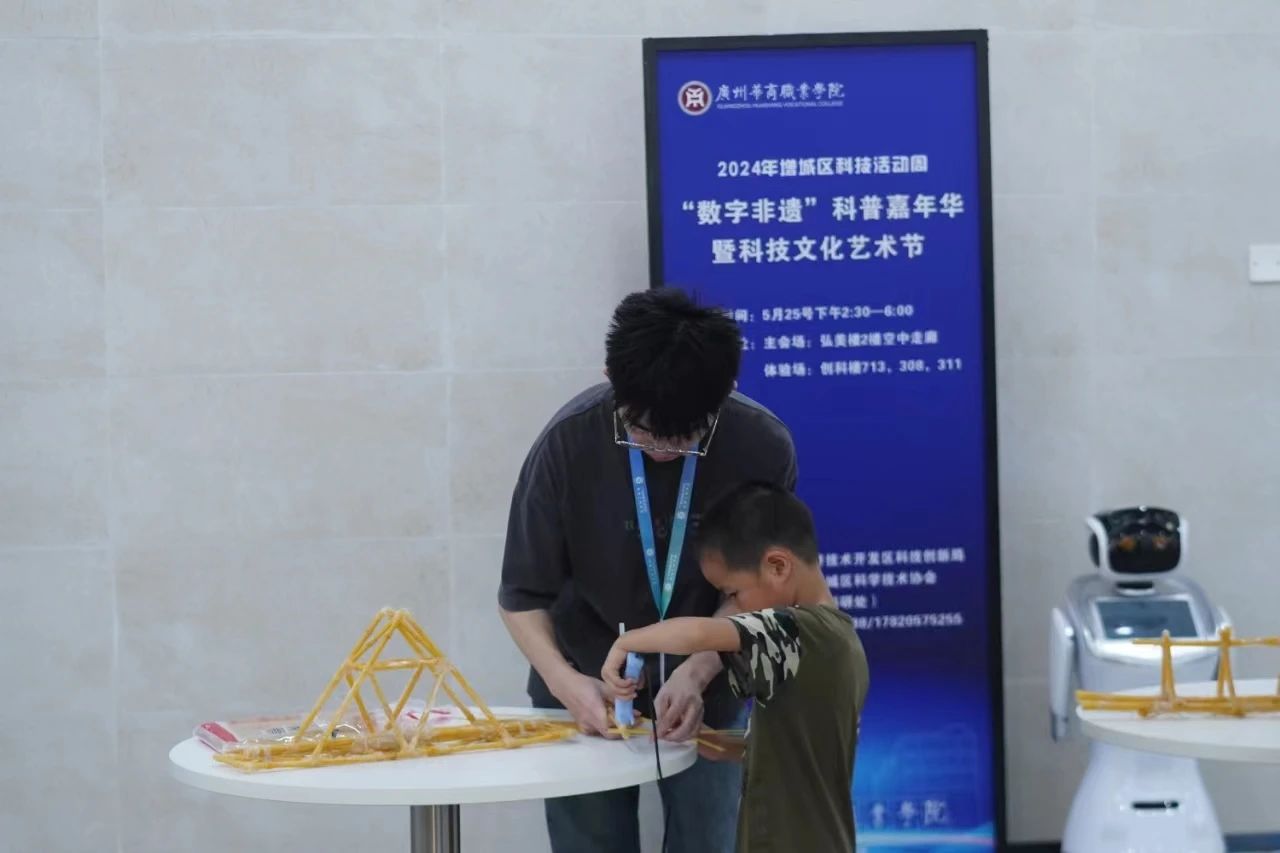 答:这次科普活动内容非常丰富,有孩子们用意大利面条搭建的桥梁,有机器人演示,还有编程体验等,孩子们都非常喜欢这些内容。这是一个将科技和文化完美结合的盛宴,为我们带来了前所未有的体验。这次活动不仅有助于培养孩子们跨学科解决问题的动手能力,这对帮助他们树立良好的科学观有很重要作用。