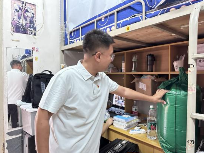 巡查过程中,姚柏洲副院长对新生们的辛勤劳动给予了高度评价,他鼓励大家继续保持这种积极向上的生活态度,将宿舍作为自己在校期间的“小家”,用心呵护,共同营造一个温馨、和谐的生活氛围。同时,他还就宿舍卫生标准、物品摆放、安全用电等方面提出了具体要求和建议,希望新生们能够养成良好的生活习惯,为未来的大学生活打下坚实的基础。
