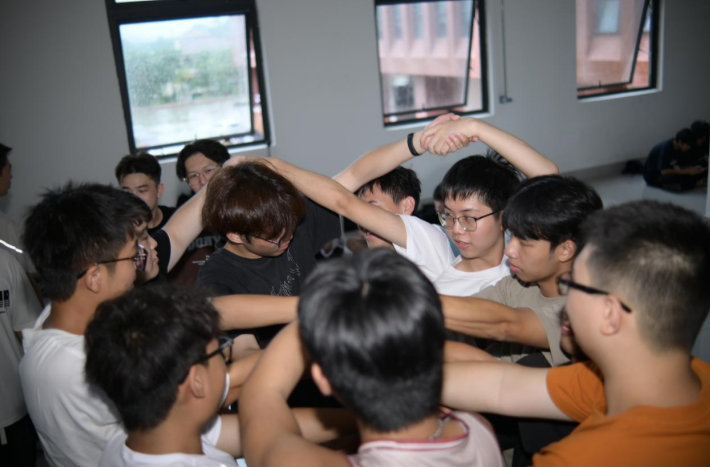 这个环节将活动推向了高潮。新生们需要在缩小版的“报纸岛屿”上共同站立,这不仅考验了大家的团队协作能力,也增进了同学之间的默契。在相同时间内站在固定报纸里的队伍人数越多就胜利!通过这个活动,大家的合作能力逐渐提升,整个过程都充满着团结和谐的团体氛围!