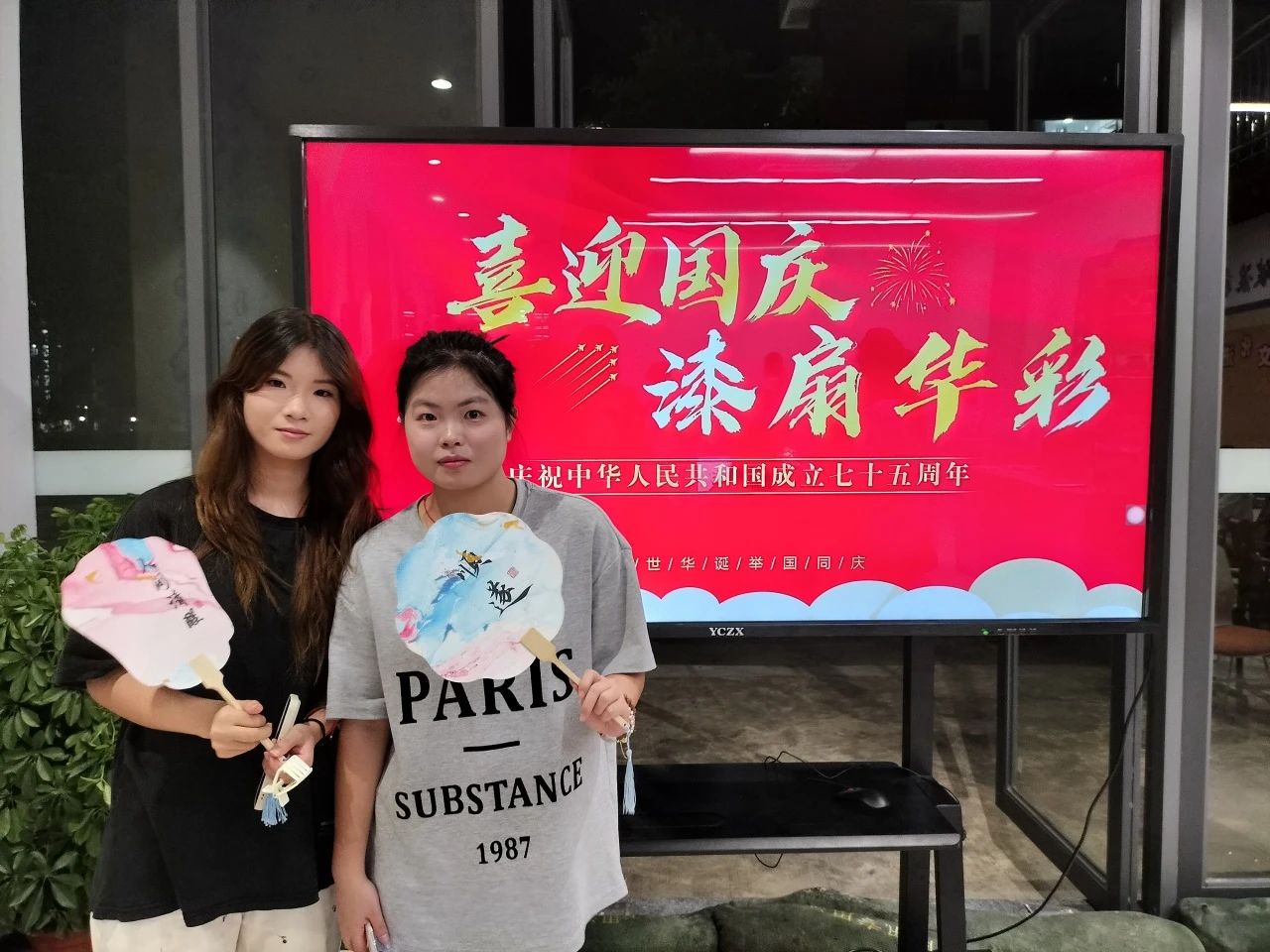 以漆扇为寄,献礼祖国华诞。在制作开始前,工作人员简单介绍了漆扇的悠久历史与制作方法,随后大家挑选喜欢的扇面和漆色,在工作人员的指导下开始制作。