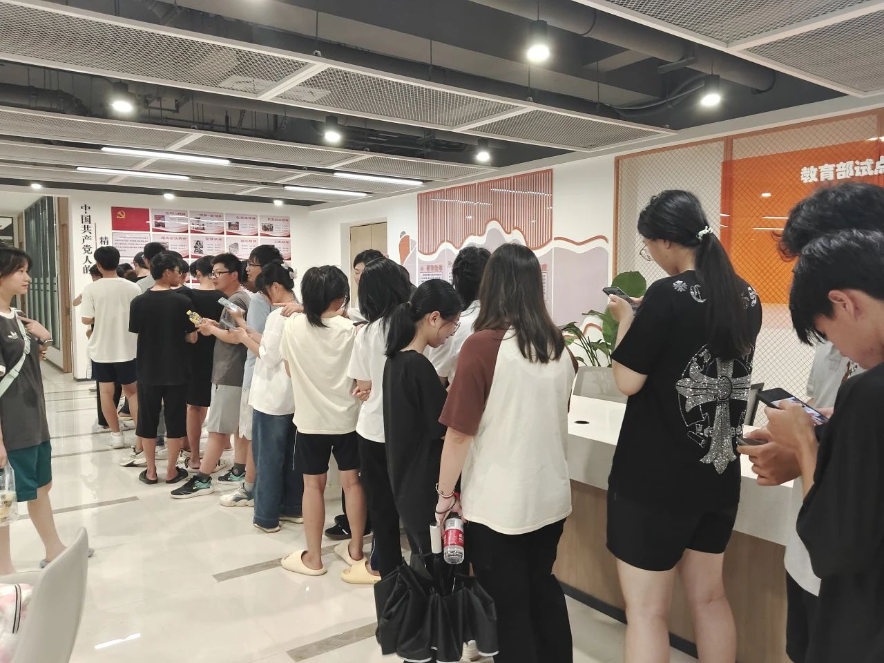 活动还未开始,同学们已经大排长龙翘首以待,他们的脸上带着激动或是带着紧张,但更多的是对体验非遗活动的好奇和期待。