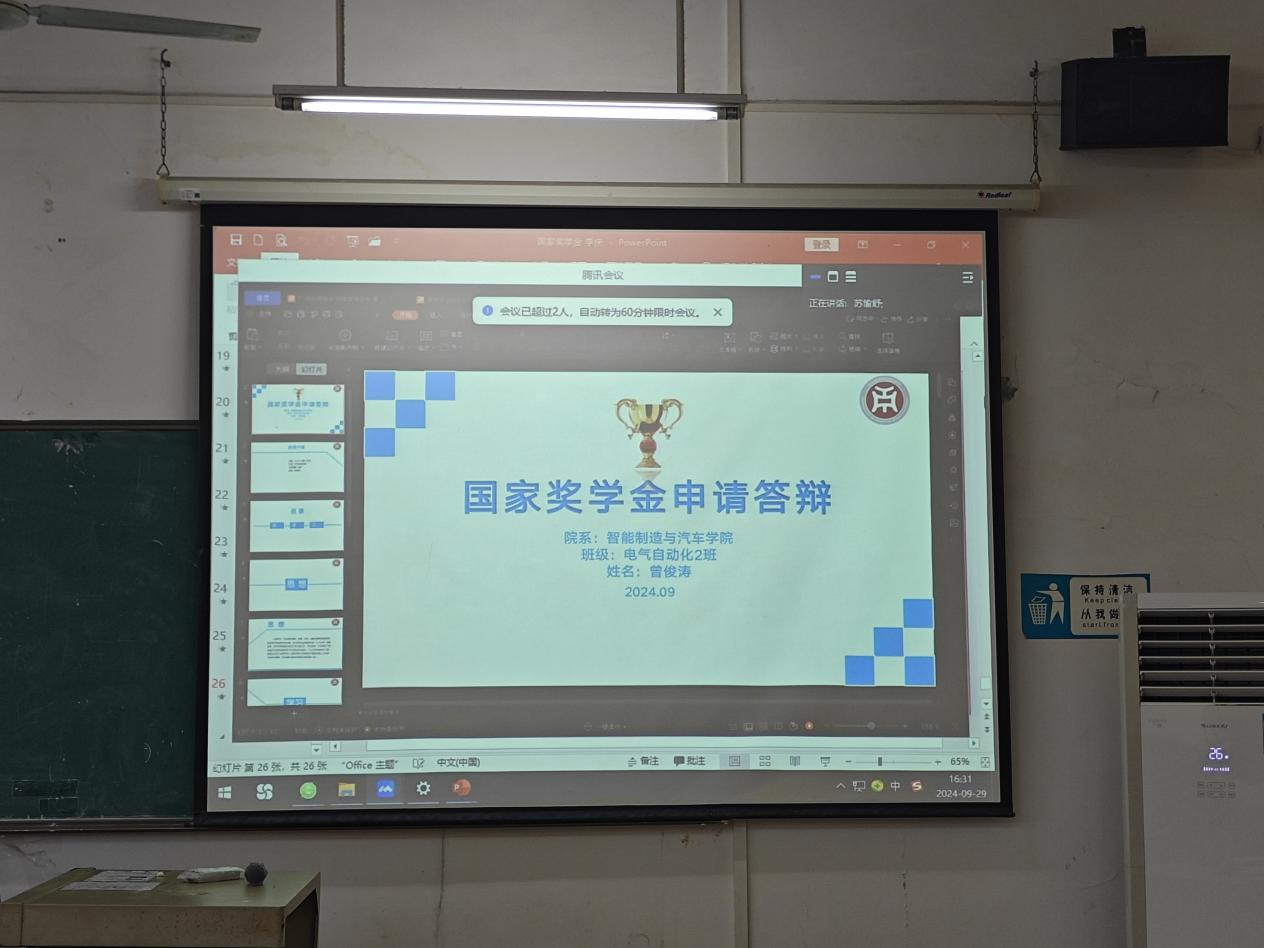 此次评审会议,江门校区与广州校区通过云会议线上一同开展。会议伊始,由戴乐毅老师介绍参与本年度国家奖学金答辩会候选人:22级汽车检测与维修1班李庆、22级新能源1班林良焕、22级新能源3班张名扬、22XH级新能源2班郑华国、23XH新能源3班徐梓希、23XH电气自动化2班柯志鹏、23XH电气自动化2班曾俊涛。