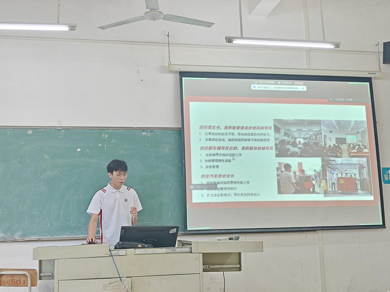 评审会过程中,各位候选人以PPT演讲的形式,在五分钟内分别从学习成绩、思想政治、社会实践、荣获奖项等方面进行自我展示。这其中有脚踏实地,深耕学科知识,成绩年级第一的学习榜样;有精进不休,成功校级立项并结项的科研先锋;有乐于奉献,积极参加志愿服务,用赤诚之心诠释青年担当的学生骨干。他们落落大方、神采奕奕,自信激扬的答辩过程赢得了现场师生的一致好评。