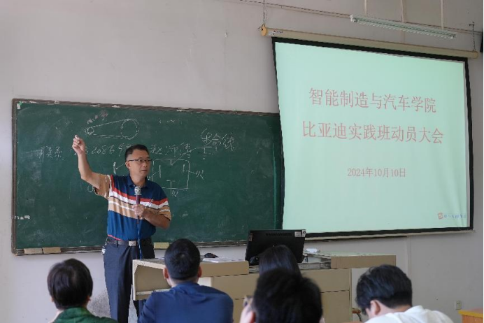 2024年10月11日星期五,在这个秋意渐浓、充满希望的日子里,智能制造与汽车学院一场备受瞩目的“比亚迪产教融合实验班”学生前往比亚迪课程实践实习动员大会在热烈而庄重的氛围中于博学楼C502盛大开启。智能制造与汽车学院院长祝常红、智能制造与汽车学院副院长姚柏洲、专任老师彭坚、辅导员周燕清、黄琳璇、曾斌出席了本次大会。