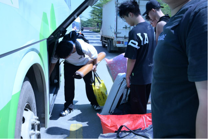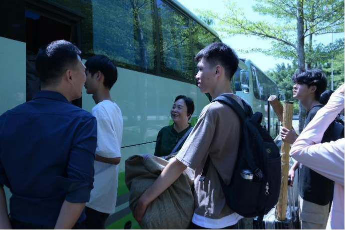 最后,大会进行到中午,在博学楼前,准备出发前往比亚迪工作的学子们个个精神抖擞,整装待发。各位领导老师亲自到场,认真负责地进行人员清点和行李管理。祝院长再次发表动员讲话,她的话语中充满了对智能制造与汽车学院学子们的深深期望和鼓励,让学子们更加坚定了勇往直前的决心。
