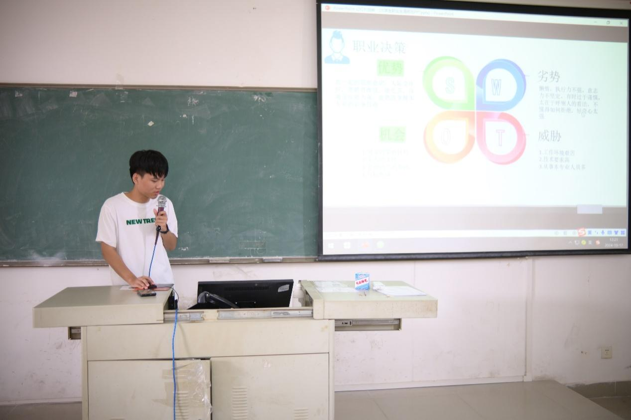 比赛伊始,参赛学生依次上台进行职业规划展示。他们结合自身的专业背景和未来的职业目标,详细阐述了自己的职业规划方案,包括短期目标、中期目标和长期目标,以及为实现目标所采取的行动计划和策略等内容。