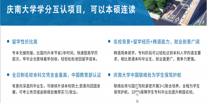 随着社会高等教育的不断普及,当今时代学历的提升越来越重要,为了提升和拓宽学生国际视野和发展空间,我院推出了2024韩国庆南大学本科学分互认项目,为广大学子带来了提升本科学历的全新路径。