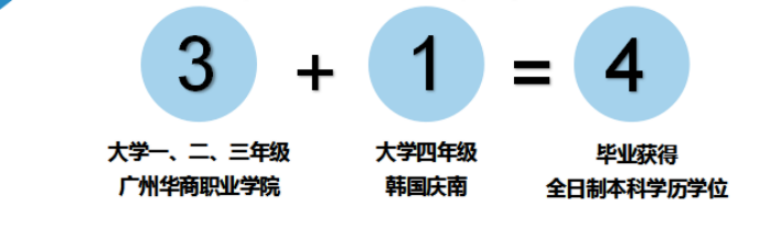 该项目是我校与韩国庆南大学联合培养项目,通过课程对接和学分互认实现“3+1”,专本连读模式,实现高效、高质量的专本连读海外学历提升。前三年在我校进行专业学习,符合合作院校规定的申请条件,第四年赴韩国庆南大学继续修读相关专业。