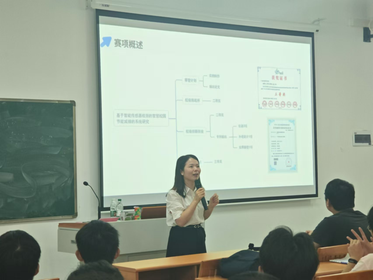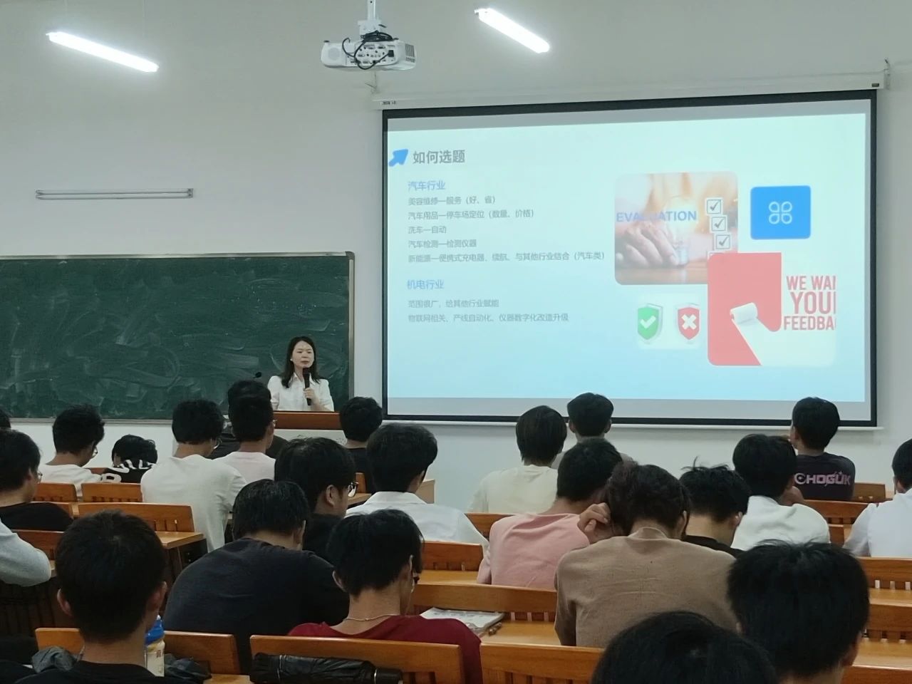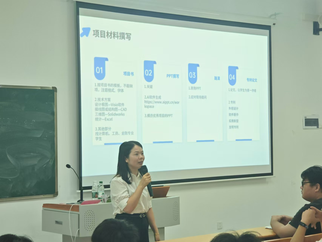 随后,莫秀英老师以亲身经历并结合历年学生创作道路讲述了如何准备创新创业类竞赛,并通过一系列 PPT 讲解与案例作品展示,帮助同学们更好地理解其中的重难点。