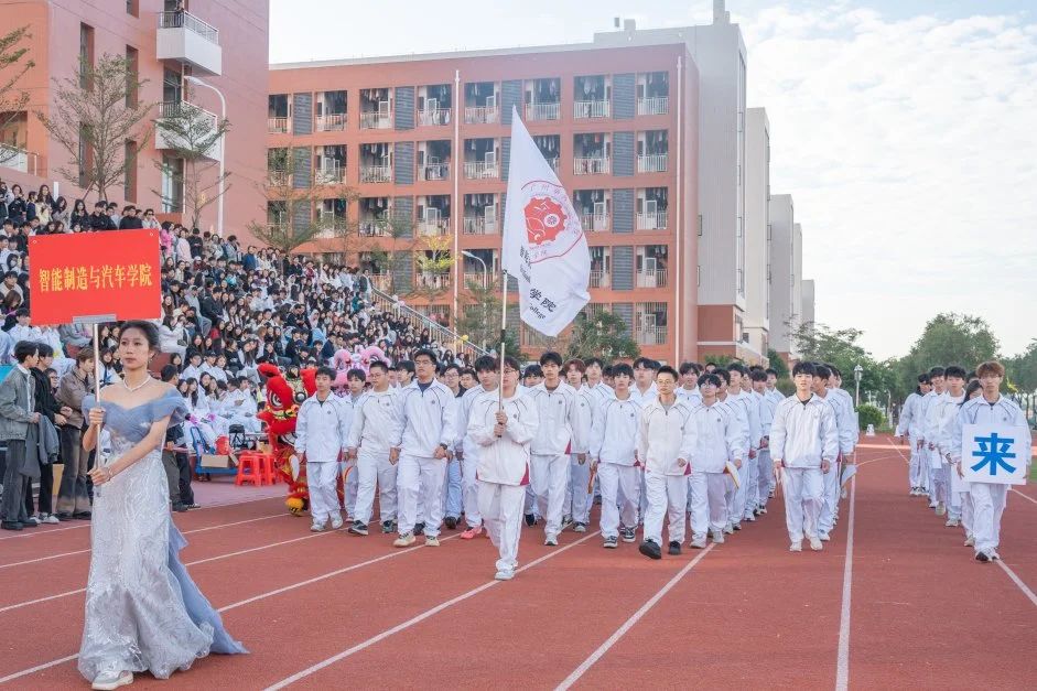 2024年11月28日上午,随着激昂的运动员进行曲响起,一年一度的校园盛事“ 运动点燃激情,健康筑梦未来”第十一届田径运动会拉开帷幕!在学校国旗队的带领下,智能制造与汽车学院方阵穿着整齐的服装、喊着响亮的口号,精神抖擞地步入会场。