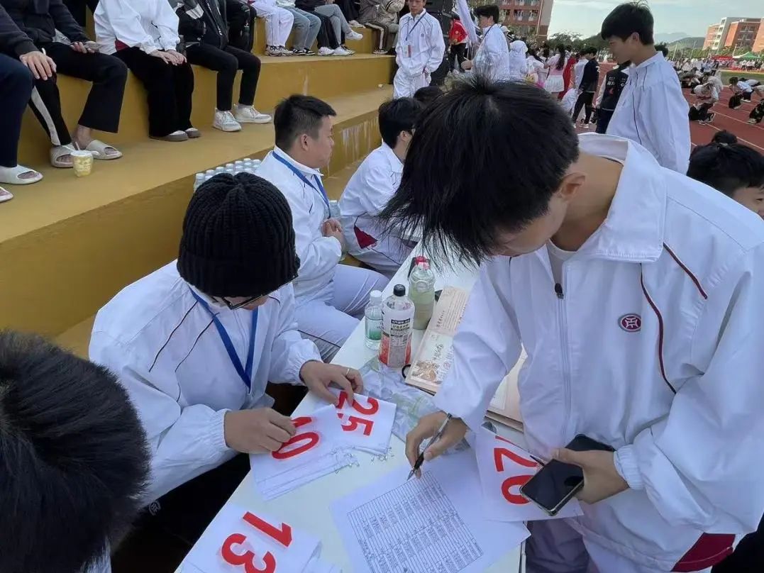在这场体育盛宴中,还有一群默默奉献的守护者——志愿者。他们穿梭在赛场的每一个角落,为运动员们提供补给,在比赛结束时关护运动会员们身体状况,他们的身影虽然不显眼,但他们的付出为这场校运会增添了无尽的温暖与感动。