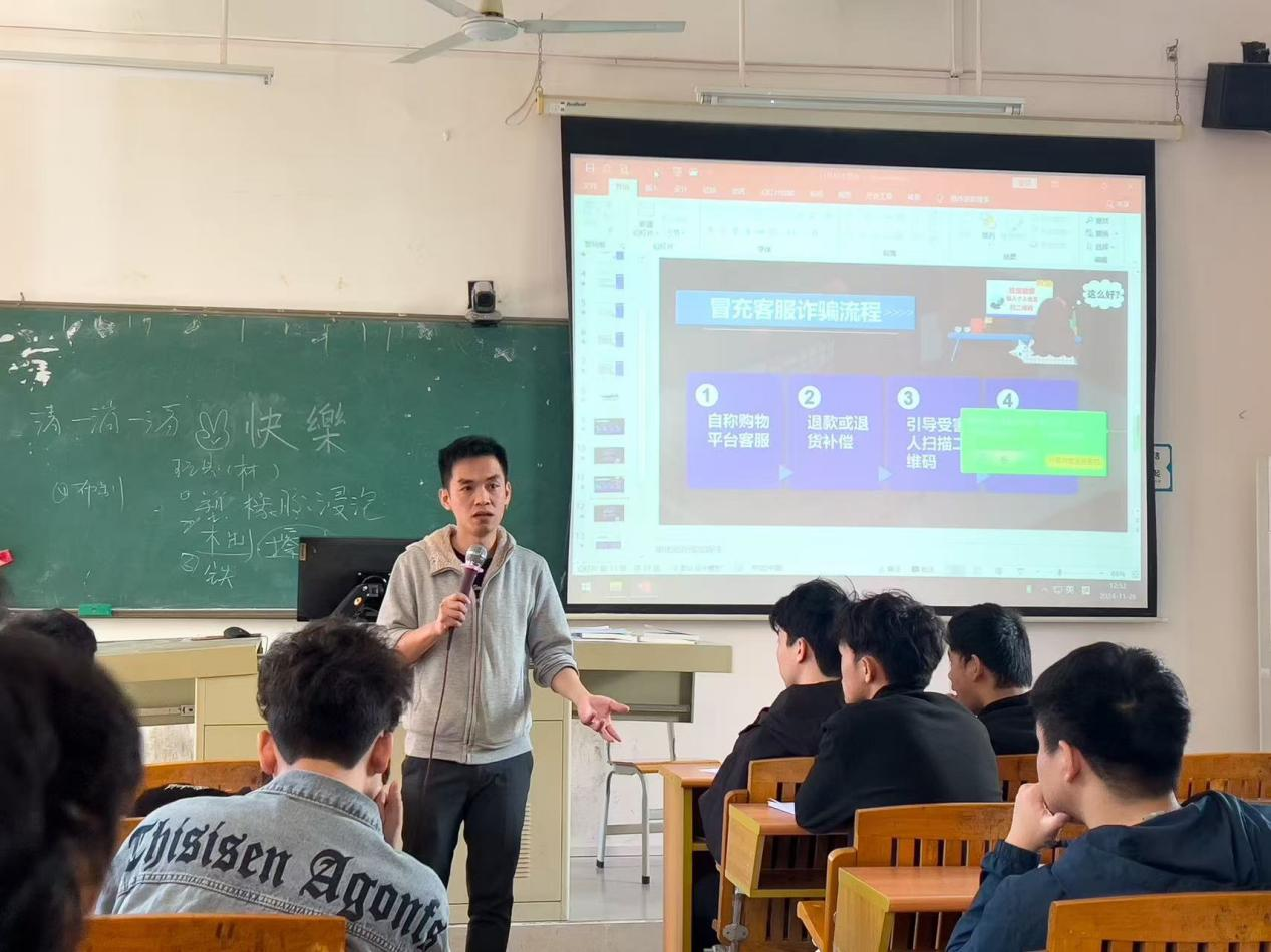 为了提高大学生对反诈的认识,增强大学生抵御网络诈骗的意识和能力,营造积极向上、健康和谐的校园环境,智能制造与汽车学院(广州校区)各班班主任为全体同学们开展了以《反诈宣传》为主题的班会。