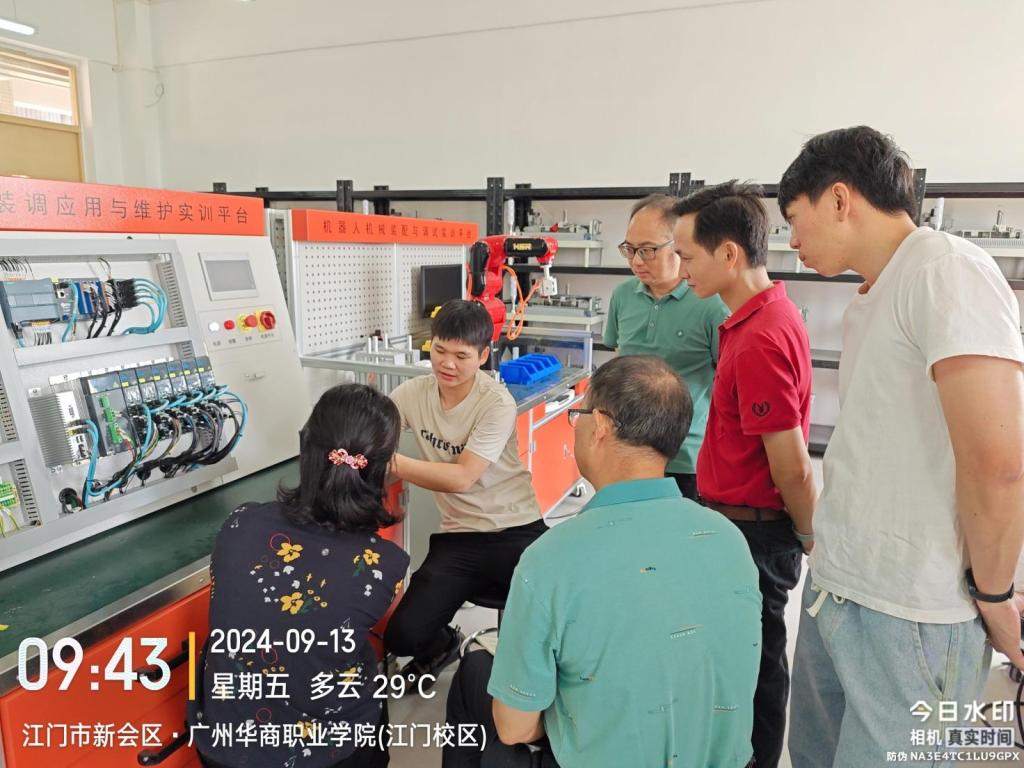 为了进一步提升教师在机器人技术领域的专业能力,促进教学内容与产业实践的紧密结合,2024年9月13日智能制造与汽车学院在江门校区成功举办了一场别开生面的机器人技术培训活动。本次培训特别邀请了华中数控的资深工程师张健锋先生担任主讲,为我校七位骨干教师带来了一场深入浅出、内容丰富的技术演讲。