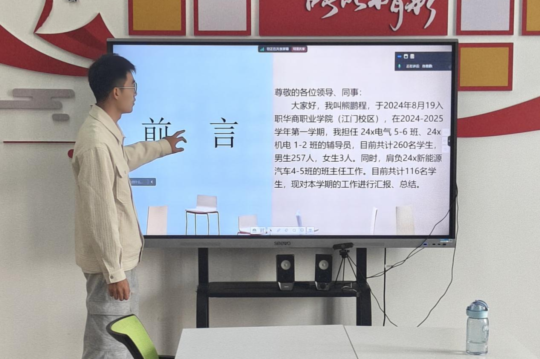 会议过程中,辅导员老师们通过“带班情况、德、能、勤、绩、廉、不足之处及改进方向”七大方向,结合个人实际工作内容,通过PPT演示与现场演讲的方式,全面阐述了各自的工作表现。在述职过程中讲到:坚持以立德树人为根本,全面推进学生思想政治教育,通过多种形式提高学生的思想政治素质。在学风建设、校园文化活动和心理健康教育等方面,辅导员均有针对性地开展了大量工作,助力学生全面发展。也在其余时间提升自己的专业素养,带队参加各项竞赛,指导各部门工作有序运转。也讲到了在工作中的不足,对自己未来的改变和展望做出了详细的计划。此次述职展现了学院辅导员老师们在道德修养、专业能力、工作态度、业绩成果和自我反省上的积极态度和不断追求,体现出智能制造与汽车学院辅导员队伍的专业素养和精神风貌。