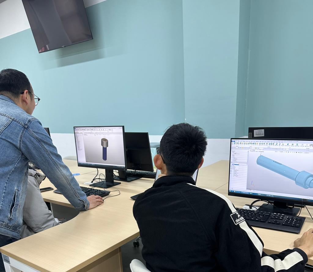 在赛前,学生们自学中望3D软件,并在教师指导下进行集中训练,为此次比赛做足了准备。参赛学生利用寒假时间自学中望3D软件,教师利用腾讯会议进行指导,回校后在实训室A4-305集中训练,这一过程不仅是对知识的巩固和实践能力的提升,更是对团队协作、创新思维和解决问题能力的全面锻炼,为竞赛做好充分准备。