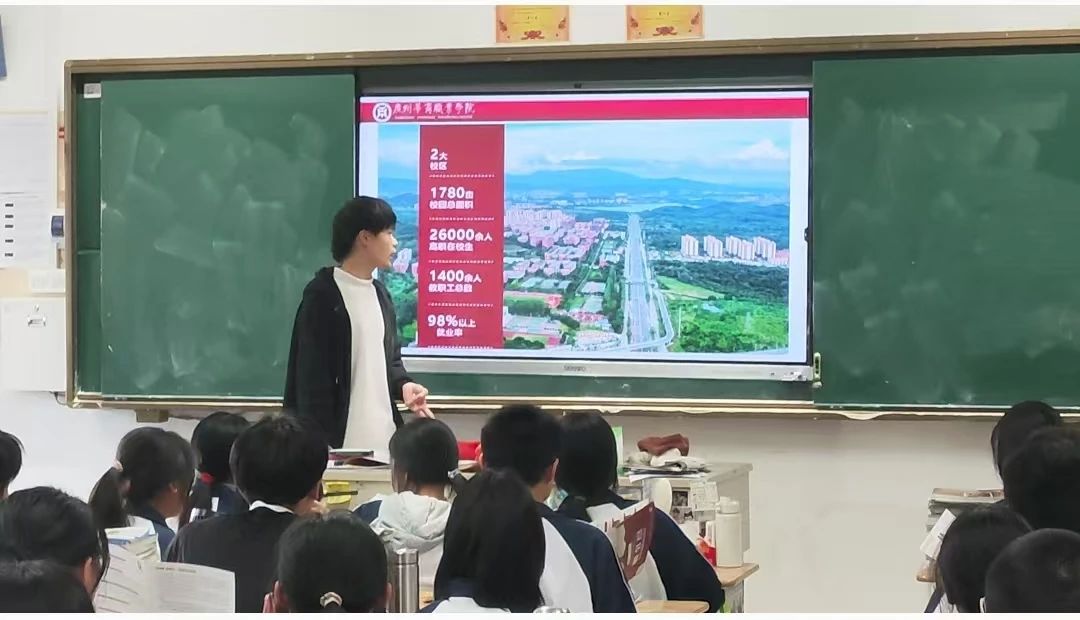 宣传活动中,队员陈晟睿向学弟学妹们详细介绍了华职的招生计划,分享了人才培养优势,还有“厚德、励志、博学、创新”的校训精神。讲述了自己在华职参与的比赛实践、社团活动的趣事,分享在一次次挑战中收获的成长,让学弟学妹们真切感受到华职的魅力。看着他们眼中闪烁的好奇与憧憬,队员陈晟睿向仿佛看到了曾经的自己,对未来充满了无限向往。