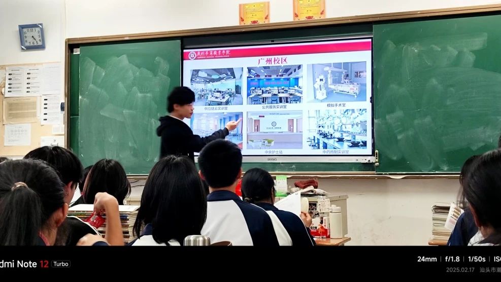 2025年2月17日,广州华商职业学院学生许东东率队回访母校潮阳金玉中学,开展交流活动。此次活动旨在分享大学生活经验,进行未来规划,激励学弟学妹们奋发向上。宣讲活动树立了华职在同学们心中的美好形象,为华职吸纳优秀学子奠定了良好基础。