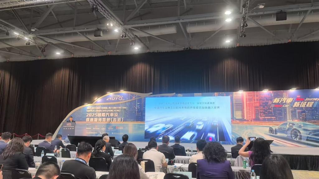 6月12日上午,研学团到达香港亚洲国际博览馆,参加了一场汽车行业的盛会——2025国际汽车及供应链博览会。此次博览会以“新汽车,新征程”为核心主题,云集上汽、一汽、东风、长安、北汽、广汽、奇瑞、吉利、比亚迪、小鹏、零跑等主流汽车品牌,以及宁德时代、黑芝麻、小马易行等汽车供应链及科技企业参展。当天,香港特区行政长官李家超发表了致辞。香港将继续依托“一国两制”的独特优势,与各方携手推动汽车产业迈向高质量发展。