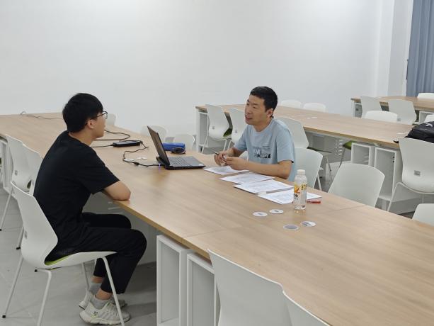 9月20日10:00-12:00,面试环节同步开启。面试官由学院专业教师与莱茵科斯特企业导师组成,围绕考生职业规划、学习动力、团队协作意识等方面提问,同时考查考生对德国双元制教育的认知与适应能力。考生依次入场,清晰表达个人想法,展现出良好的综合素质,为招生选拔提供了全面参考依据。