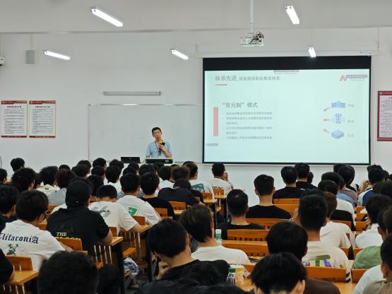 自2025级中德“机电一体化”双元制班招生启动以来,学院联合山东莱茵科斯特智能科技有限公司开展报名宣导活动。在9月19日的宣导现场,企业专家详细介绍了班级依托国家教育部中德先进职业教育合作(SGAVE)项目背景,以及“学校+企业”双元培养模式、德国职教课程体系、实训设备配置和毕业“双证”优势。解答考生关于专业学习、就业前景等疑问,为报名考生筑牢认知基础,点燃大家的职业发展梦想。