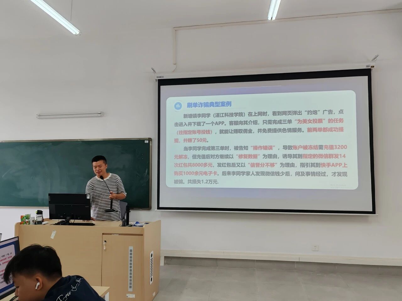 此次主题班会以近期频发的校园诈骗案例为切入点,通过播放反诈宣传视频、讲解反诈PPT等形式,向学生普及电信诈骗常见手段及防范技巧。各班主任指导学生掌握最新反诈知识,进一步深化学生对反诈知识的理解。