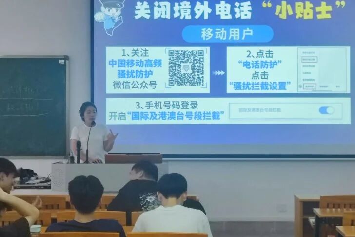 班会期间,学院同步开展境外来电功能使用情况摸排工作,重点指导学生关闭境外来电功能,通过现场演示操作流程,确保学生掌握“屏蔽境外电话”的具体方法,从技术层面阻断诈骗风险,并统计“无境外来电需求”及“已关闭境外来电功能”的学生人数,此举旨精准掌握学生反诈防护措施落实情况,为后续针对性安全教育提供数据支撑。