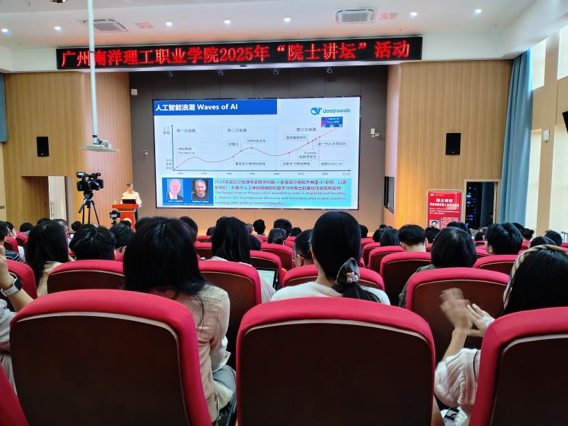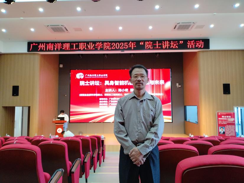 为紧跟产业发展前沿,提升我院工业机器人技术专业的建设水平,近日,我院教师卢正亚应邀参加了由广东省民办高校联盟主办的“院士讲坛”活动。
