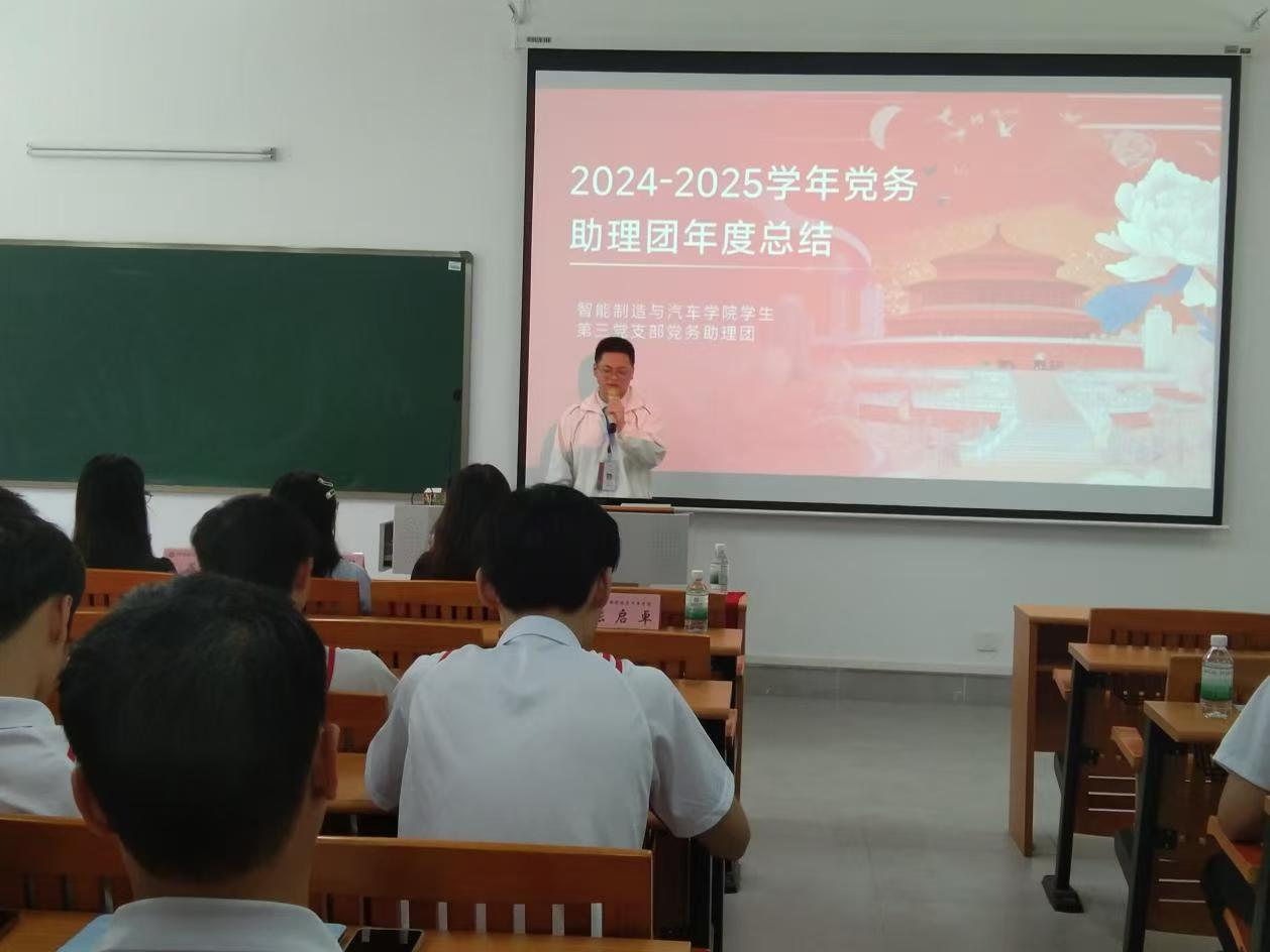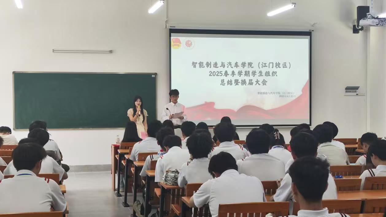 为保障学生组织工作的连续性和创新性,为学院注入新的活力与智慧,智能制造与汽车学院(江门校区)于2025年 6 月 25 日中午12:30在 3 号楼 214 教室顺利举行学生组织总结暨换届大会。本次大会得到广大师生的积极配合,现场氛围热烈,各项议程有序推进并取得良好效果。
