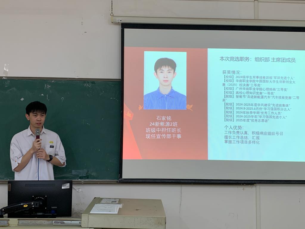 竞聘过程中2024级候选人们结合自身本学年的工作与实践经历,阐述了对学生组织工作的理解与向往,也展示了自身一年来的成长与优势。然后由考核小组成员进行提问,候选人们认真作答,他们尽管在台上有些许紧张,但也展示出了良好的精神风貌,看得出来各位候选人都怀着饱满的热情为此次竞聘做足了准备。