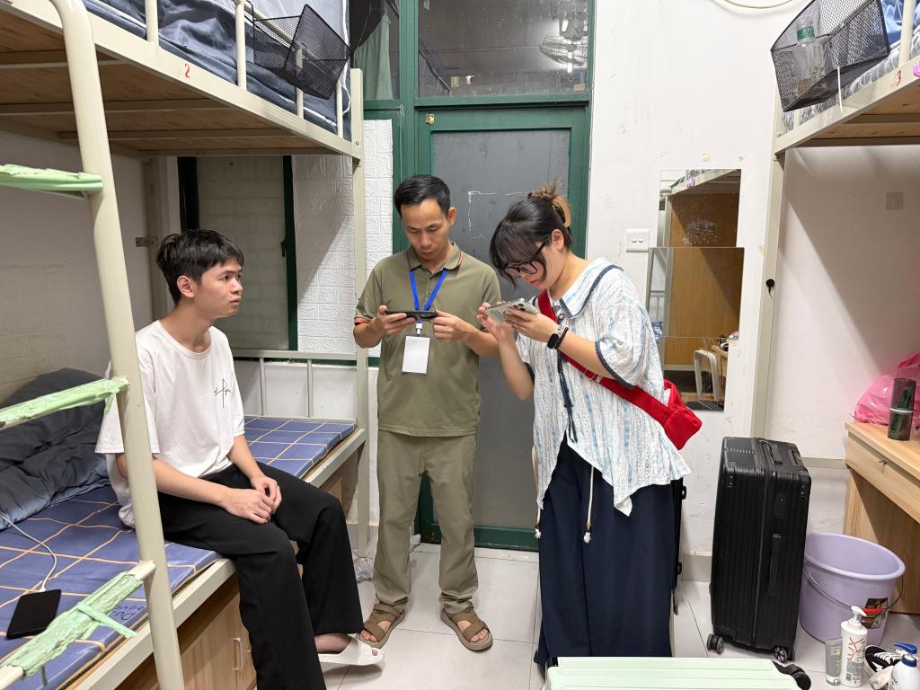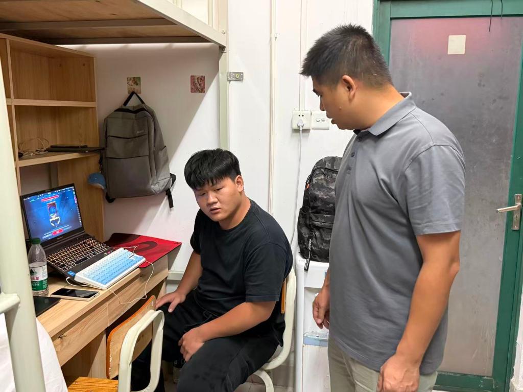 巡查小组重点检查了宿舍设施、用电安全及卫生环境,对发现的问题及时记录并反馈至相关部门处理,确保新生拥有良好的住宿条件。除此之外,对新生再次做出防诈提醒,不要轻信来路不明的推销,提升自己的安全防范意识。