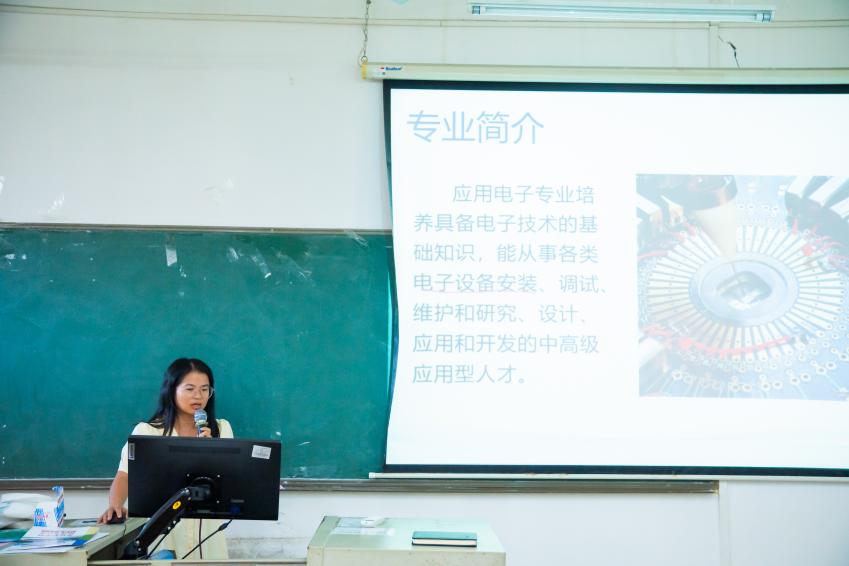 紧接着,9月1日15:00,应用电子技术专业介绍会于博C506举行。刘燕芳老师聚焦应用电子技术专业,围绕专业特色、就业方向及校企合作资源等内容进行了系统阐述,为2025级新生深入解析电子技术专业领域的发展路径与学习重点,助力其科学规划学业与职业发展。