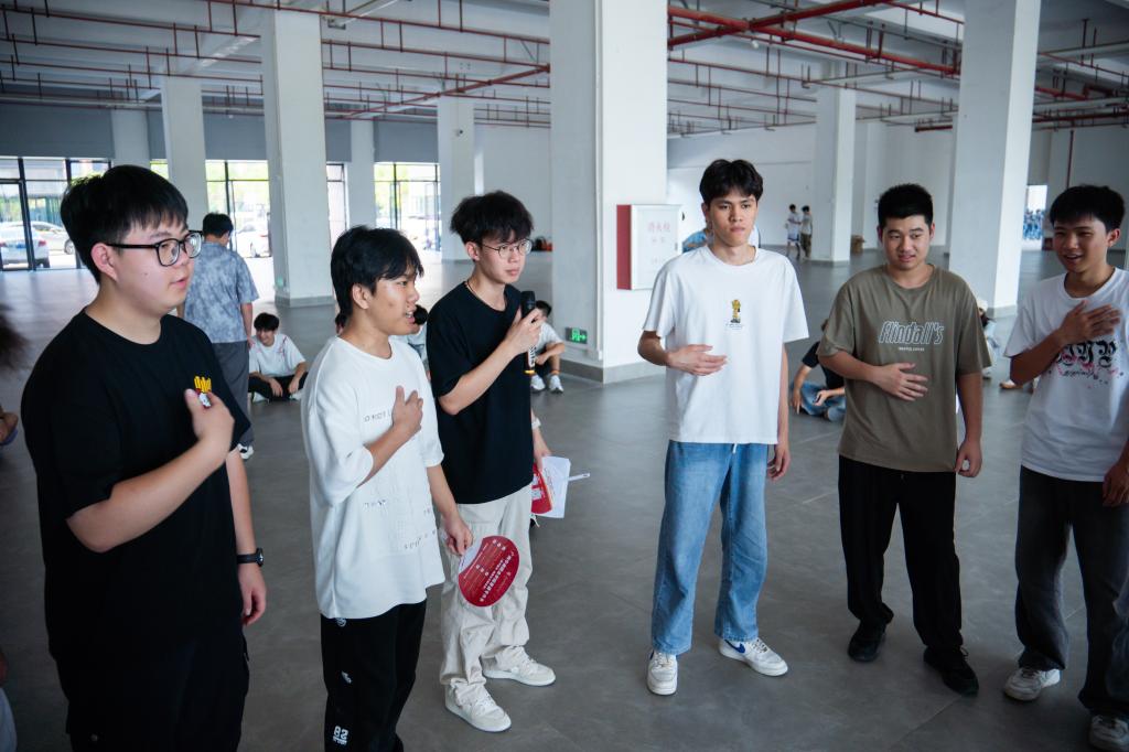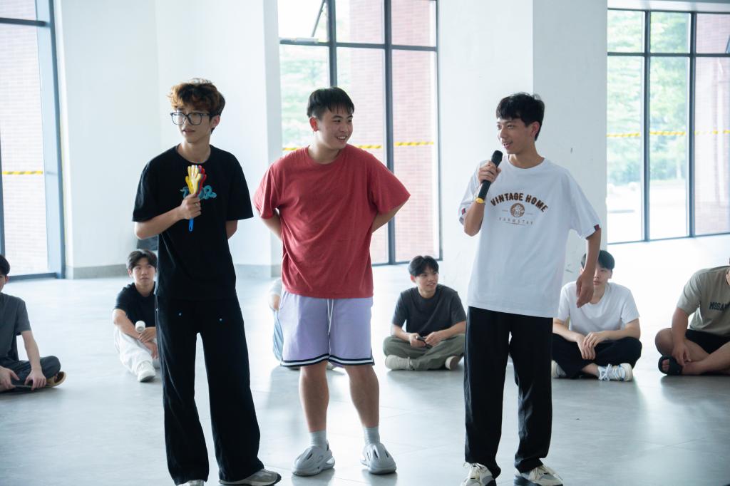 小组成员可以个人或自由组成小组上台即兴表演,最后新生辅导员分享总结,顺利完成破冰活动。