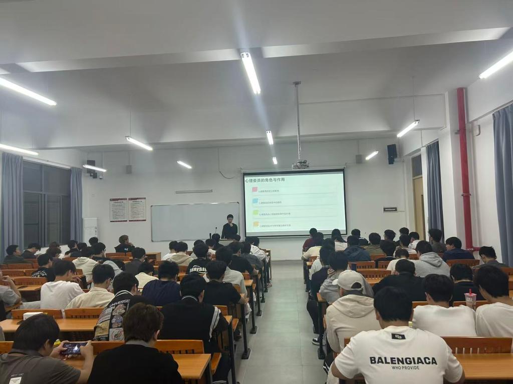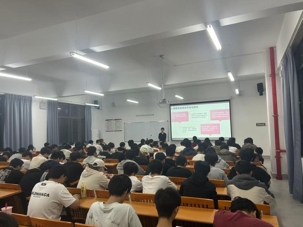 培训现场,张启卓老师聚焦班级心理委员与宿舍信息员的岗位角色及核心作用,开展了系统且深入的解读。在老师的讲解下,在场同学都清楚认知到,这两类学生骨干不只是班级心理健康防线的守护者,更是连接同学心灵、搭建沟通桥梁的关键纽带。从心理委员的具体岗位职责,到心理健康教育工作的重要意义,张老师带来了层层递进的内容剖析,让参与培训的每一位同学都感到受益匪浅、收获满满。